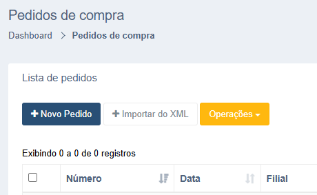 Para criar um novo pedido de compras clique no menu Compras / Pedidos de compra